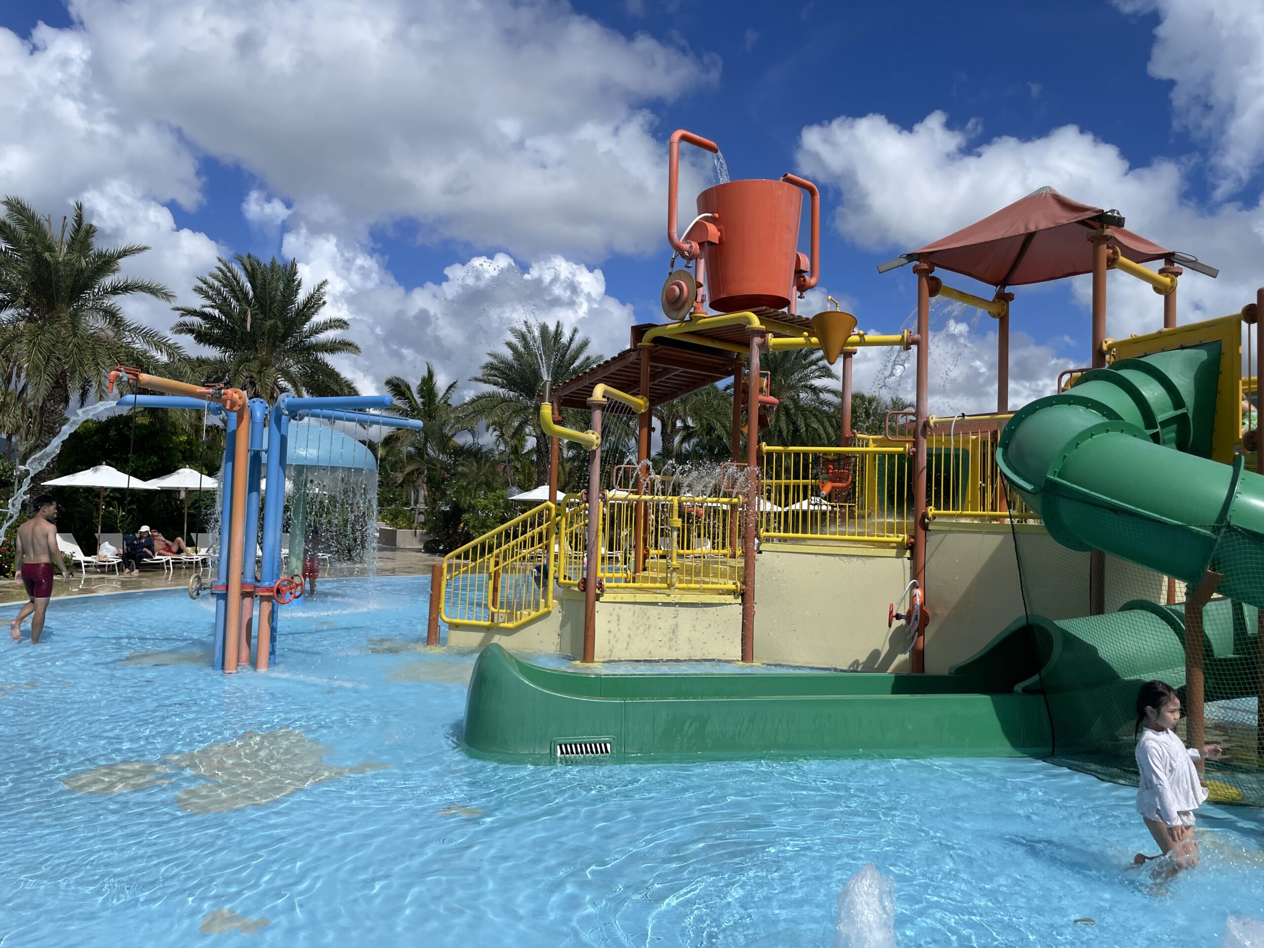 目玉はなんといっても「スプラッシュパーク」。 滑り台や水が飛び出す仕掛けに、2歳の子供が大興奮! ここだけで1時間は遊べます。 (※スライダーは身長91cm以上、体重91kg以下の利用制限がありました)