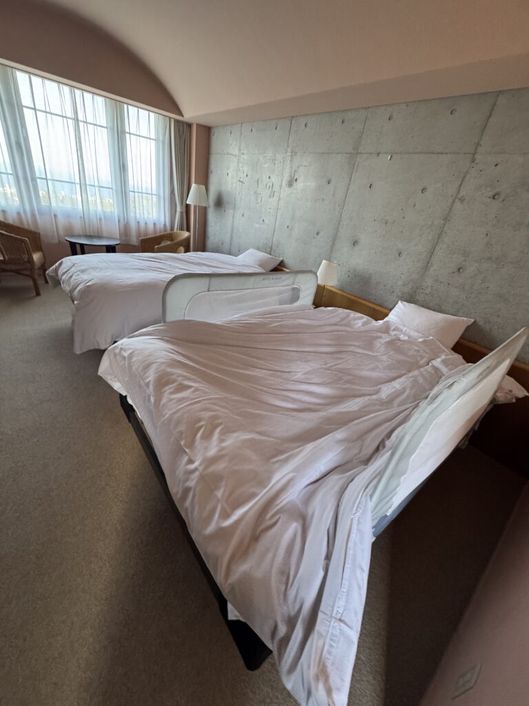 • 事前にリクエストして**「ベッドガード」**を設置してもらえたので、転落の心配なく眠れました。