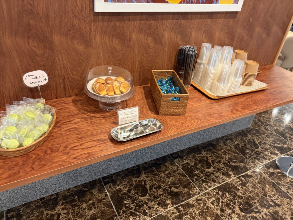 ラウンジにはお酒だけでなく、スイーツも充実。 自家製アイス、マカロン、クッキーなどが食べ放題で、子供たちは大喜び。特にマカロンがあるのは珍しく、高級感を感じました。