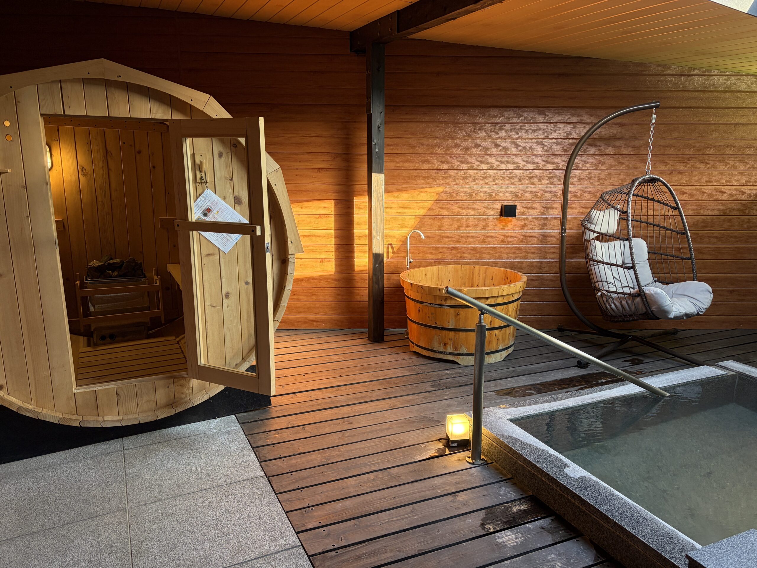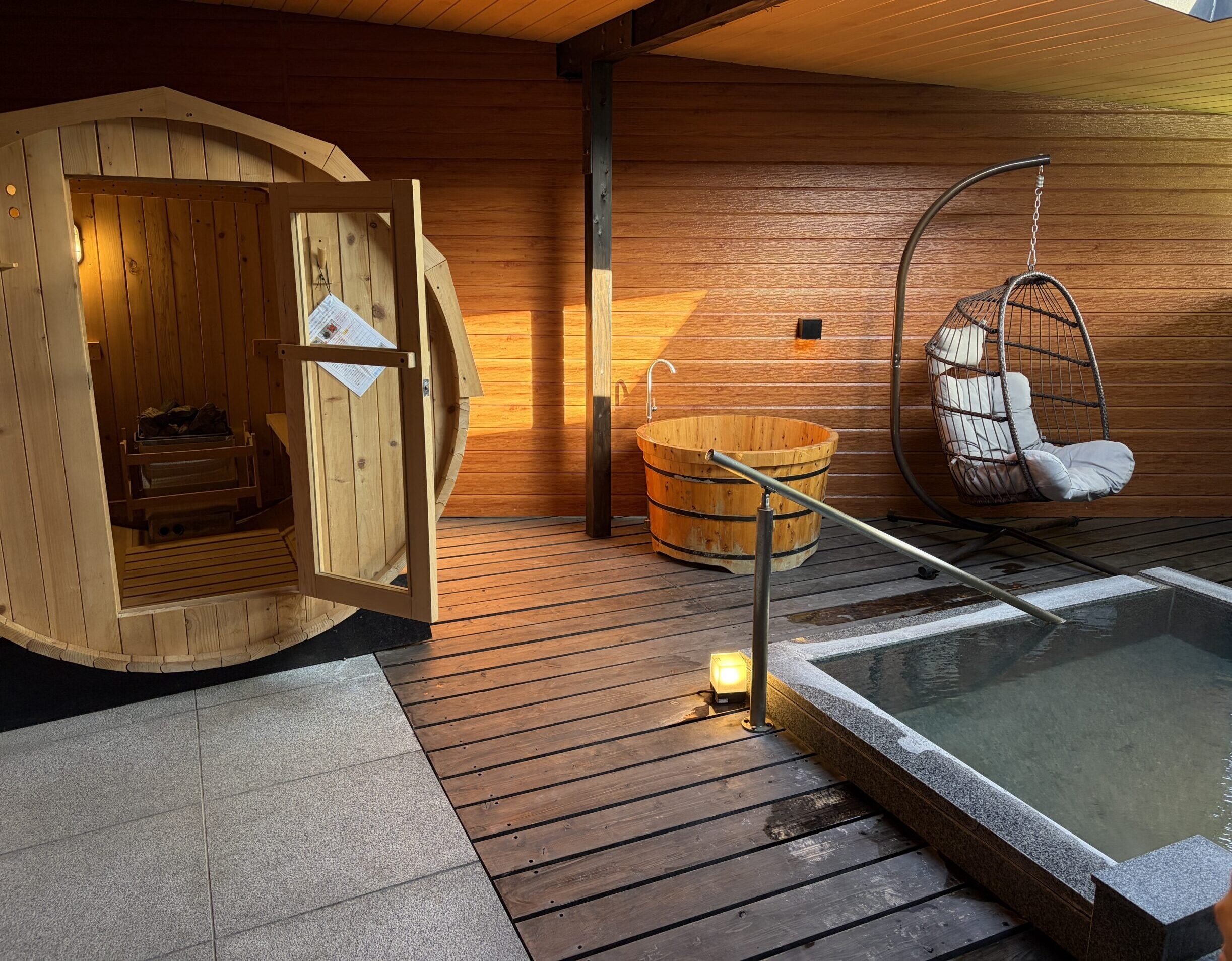 大浴場に行かずとも、子供たちが庭で遊んでいる間に、親は「サウナ→水風呂→庭で外気浴」という完璧なルーティンを楽しめました。