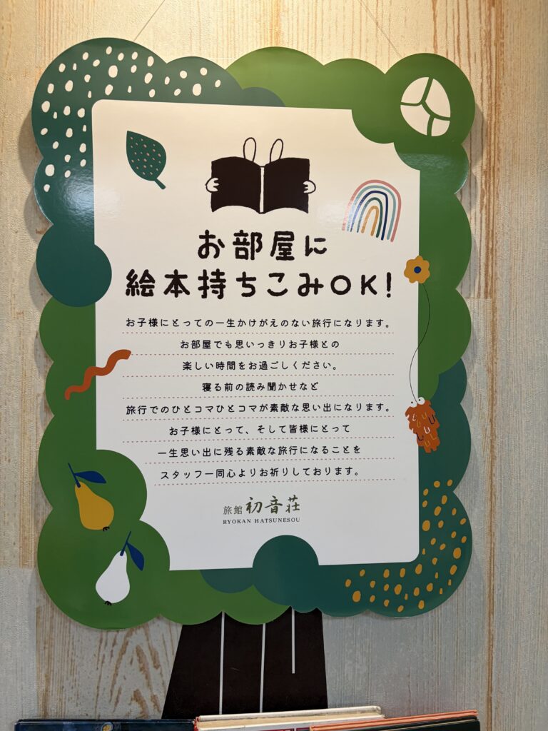 • 絵本読み放題: ロビーやライブラリーだけでなく、部屋に持ち込んで読み放題。