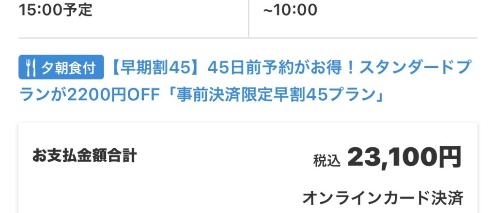 まとめ:土日で2.3万円は破格!予約は「早割」を狙うべし