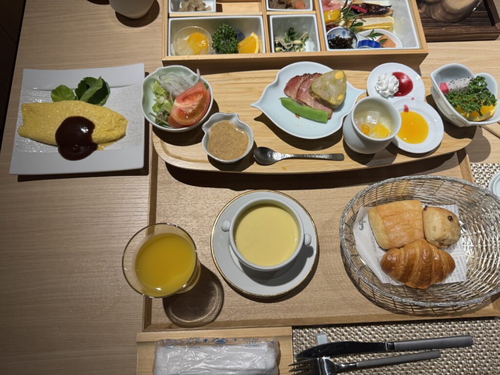 朝食は定食ですが和食はみそ汁と白ご飯、洋食はパンとスープが追加で頼み放題でした。