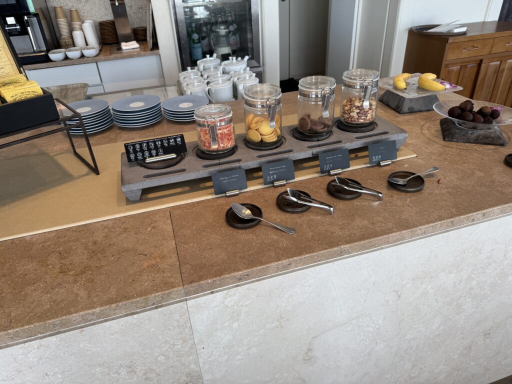 さらに、セルフサービスでクッキーやナッツ、ドライフルーツなども食べ放題。1歳・2歳の子供たちも、クッキーを美味しそうに食べていました。