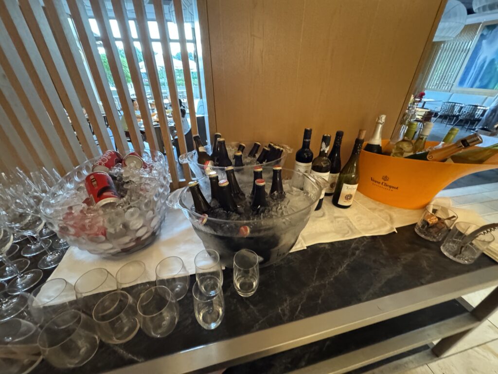 - 飲み物はラウンジとほぼ同じ(スパークリングワイン、ビール、各種ドリンクあり)。