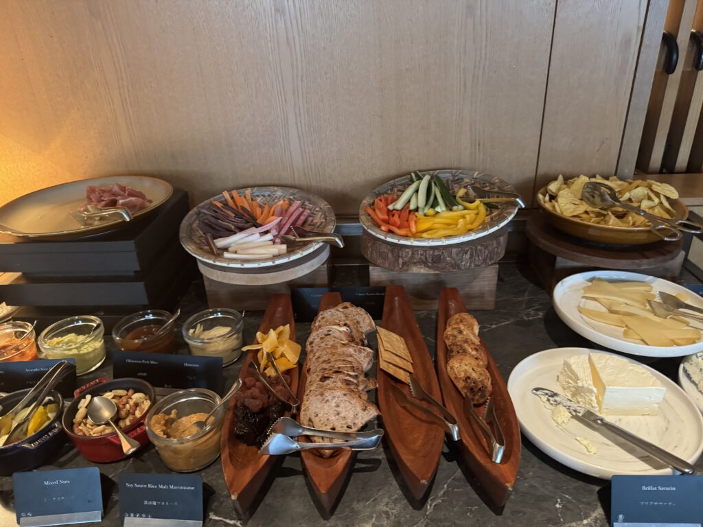 さて、クラブラウンジの最大の楽しみといえば**「イブニングカクテル」(17:30~19:30)**。 アルコールやオードブルが無料で楽しめる、夢のような時間です。
