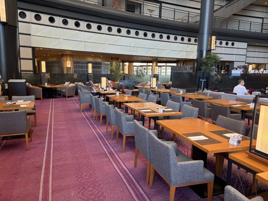 その後、4階のブラッセリー「シアラ」へも行ってみました。 こちらはダイヤモンド会員を含むヒルトン会員専用の優先エリアが用意されていましたが、週末ということもあり、朝食会場自体はかなりの混雑でした。 種類豊富なビュッフェを楽しみたいならシアラ、静かにゆっくり食べたいならラウンジ、と使い分けるのが正解ですね。