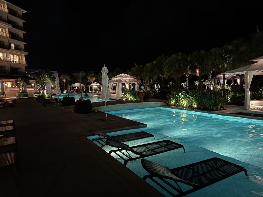- 夜はナイトプールとしても営業しており、幻想的な雰囲気でした。