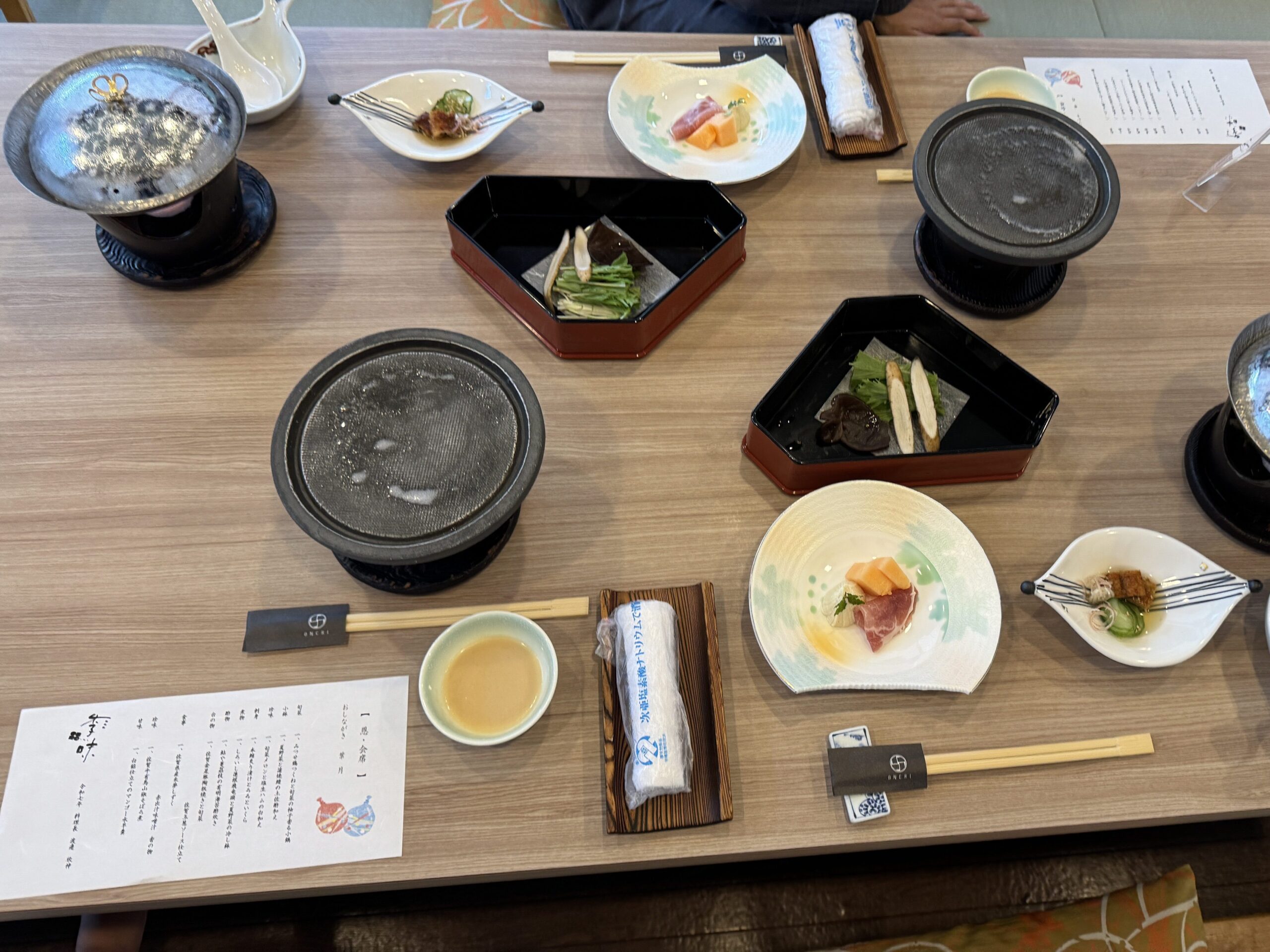 今回の予約では、子供たちの食事はまだ食べムラも多いので「食事なし」でお願いしていました。 大人は、旬の食材をふんだんに使った美しい和食のコース料理を堪能。一品一品が丁寧で、目でも舌でも楽しめました。